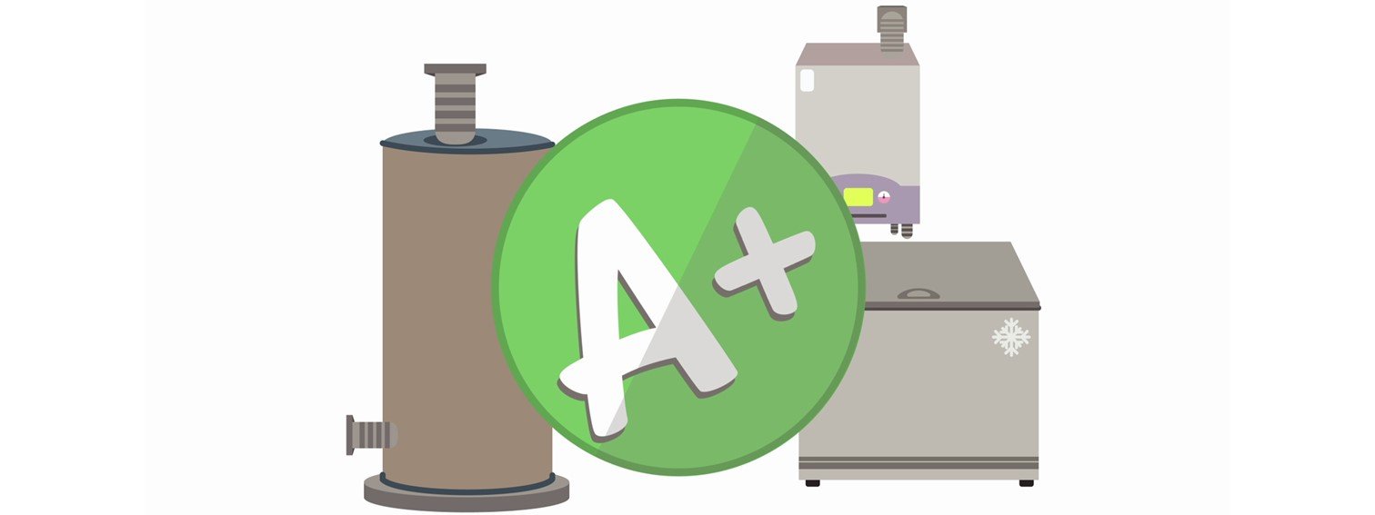 In the EU, different household appliances including fridges, freezers and wine coolers come with an energy label indicating their energy efficiency, with a scale from A (most efficient) to G (least efficient). The grade is based on how many units of energy they use per hour (their kWh consumption).